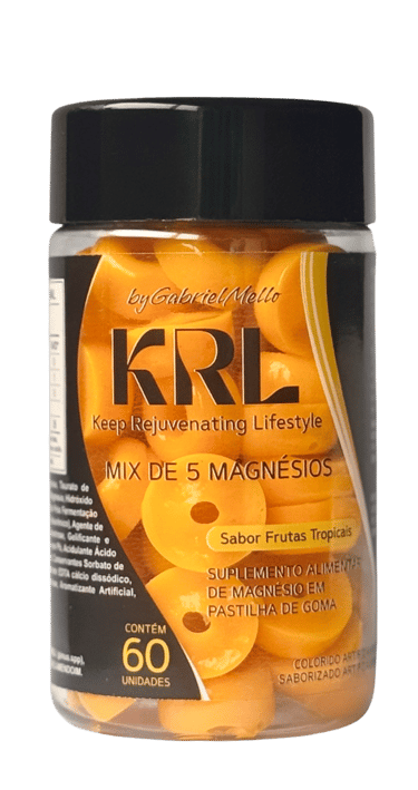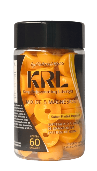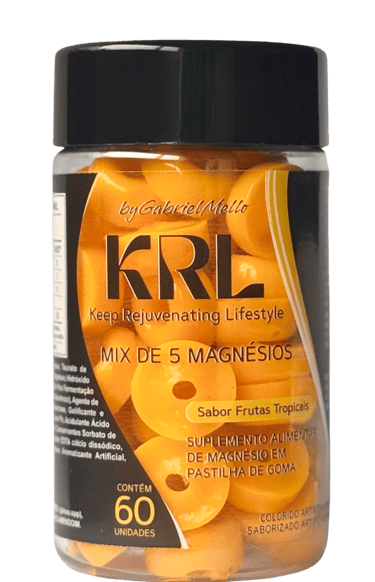 O KRL – reúne Bisglicinato, Taurato, Malato, Hidróxido e Óxido de Magnésio em uma goma prática e saborosa de sabor de frutas tropicais.